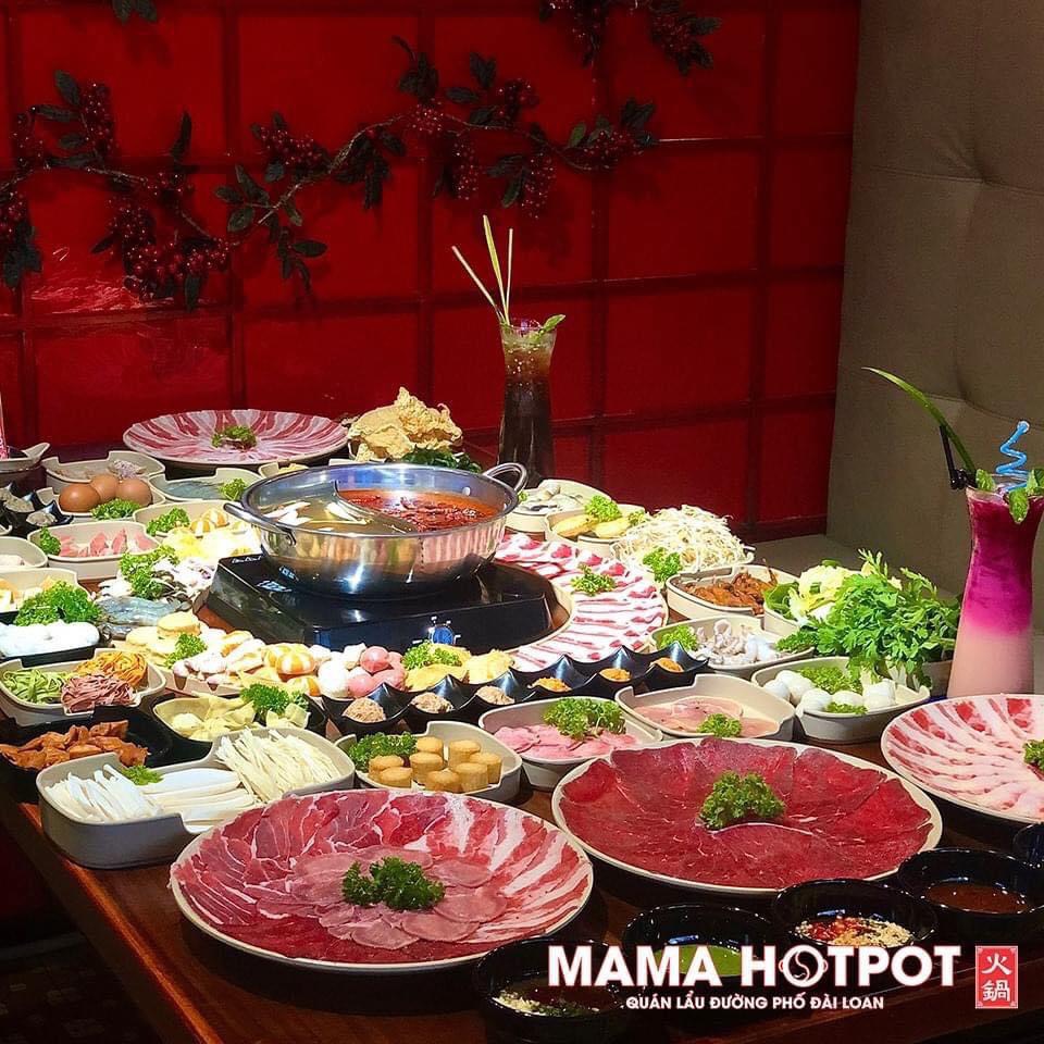 Mama Hotpot phục vụ hơn 100 loại món nhúng chất lượng cao, từ các loại thịt bò nhập khẩu như thăn bò, gù bò, gầu bò, ba chỉ bò mềm mọng, đến thịt heo, hải sản tươi sống như tôm, mực, cá hồi, bạch tuộc,… Bên cạnh đó, thực khách có thể thưởng thức các loại viên thả lẩu phong phú và rau xanh tươi mới được tuyển chọn mỗi ngày.